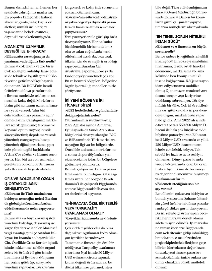 Our CEO Enis Karslioglu’s interview with Kobi Aktüel Magazine “BIGGBRANDS provides E-Export solutions for your brand from A to Z all over the world”